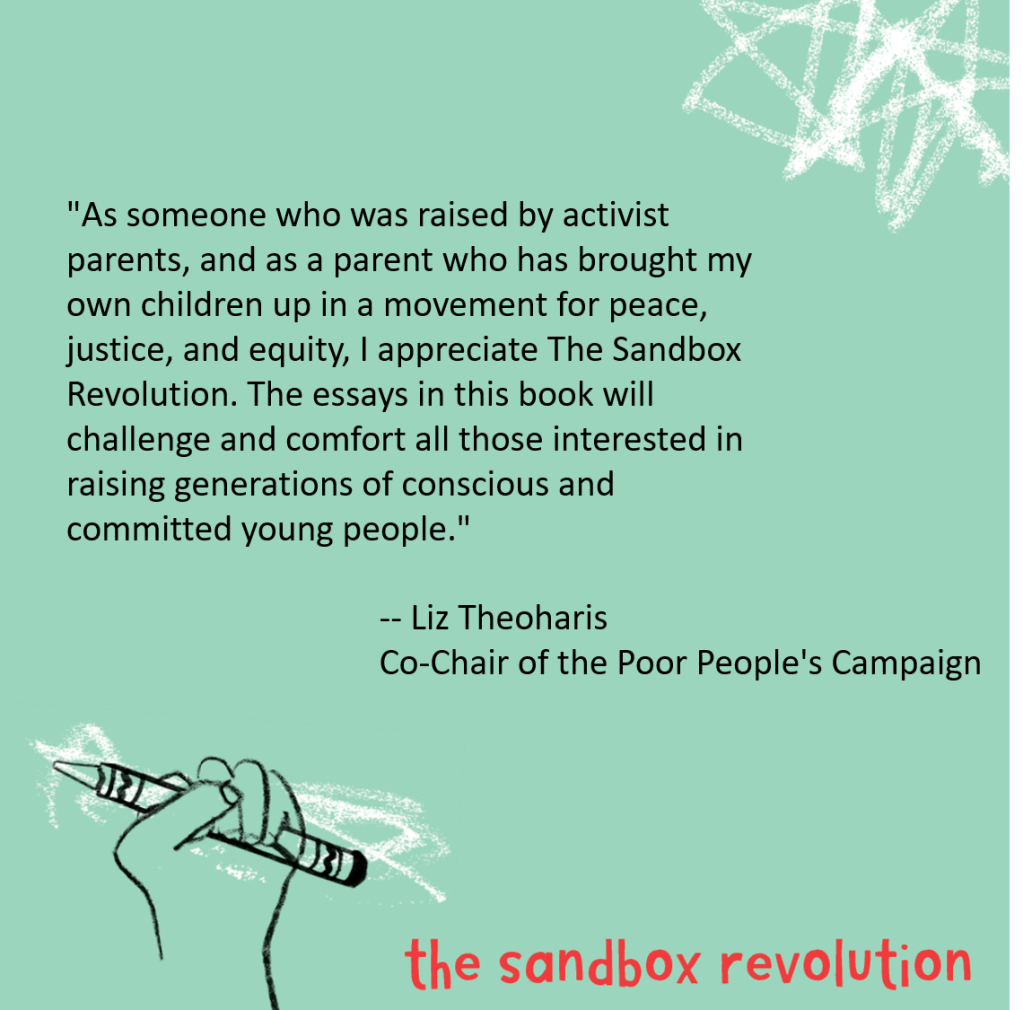 “As someone who was raised by activist parents, and as a parent who has brought my own children up in a movement for peace, justice, and equity, I appreciate The Sandbox Revolution. The essays in this book will challenge and comfort all those interested in raising generations of conscious and committed young people.” –Liz Theoharis, co-chair of the Poor People’s Campaign, editor of We Cry Justice: Reading the Bible with the Poor People’s Campaign